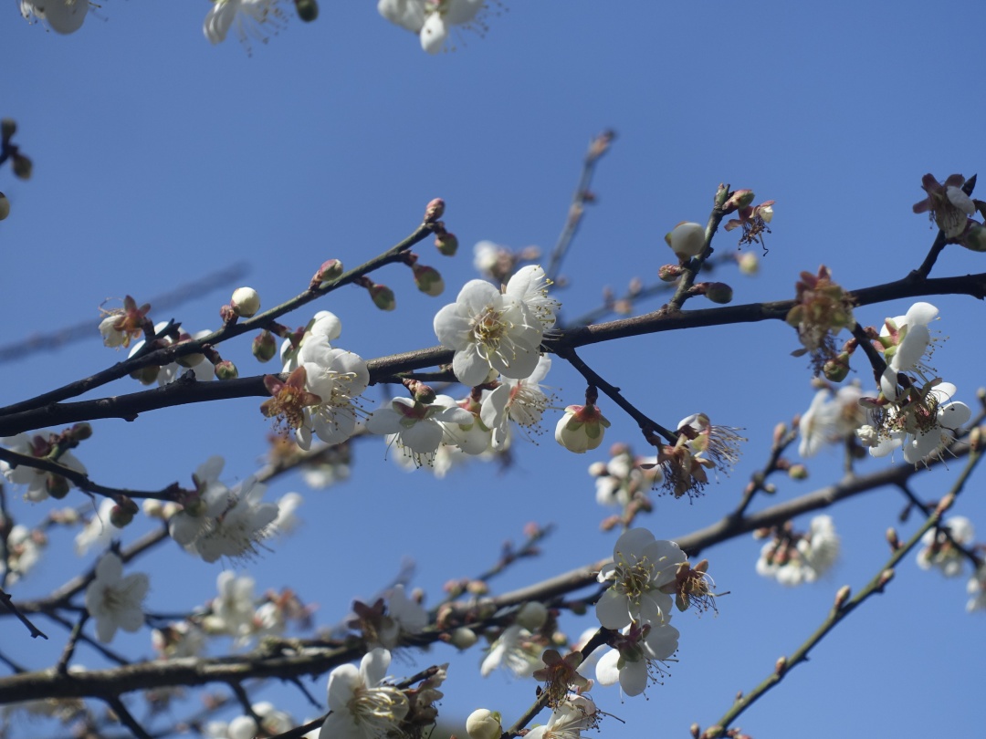 梅的花期一般為晚冬至早春,先花後葉。每莖節開1~2朵,無梗或具短梗,花萼上有短柔毛,基部癒合為鍾狀的筒,上端分裂為五瓣,每枚裂片卵形。
