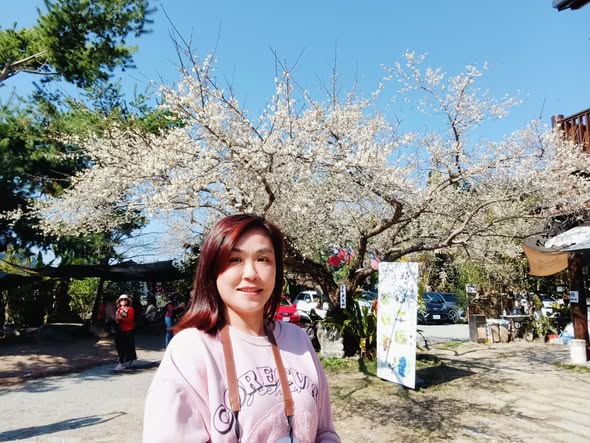 跟著人群鑽到梅樹園裡,沿途一整片梅樹,心情就超級美麗呀!新社梅花從元旦開始綻放,花期為期3週。