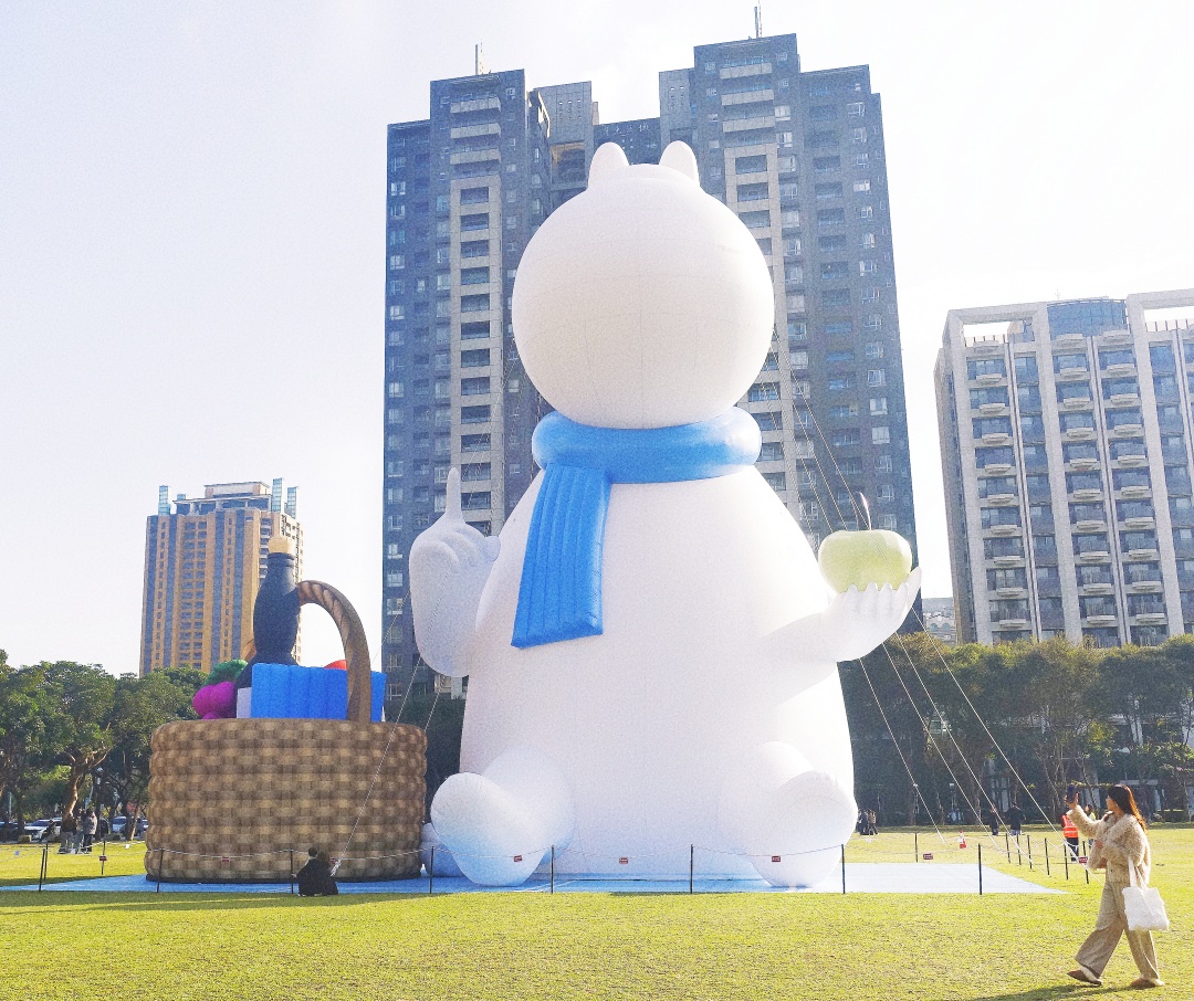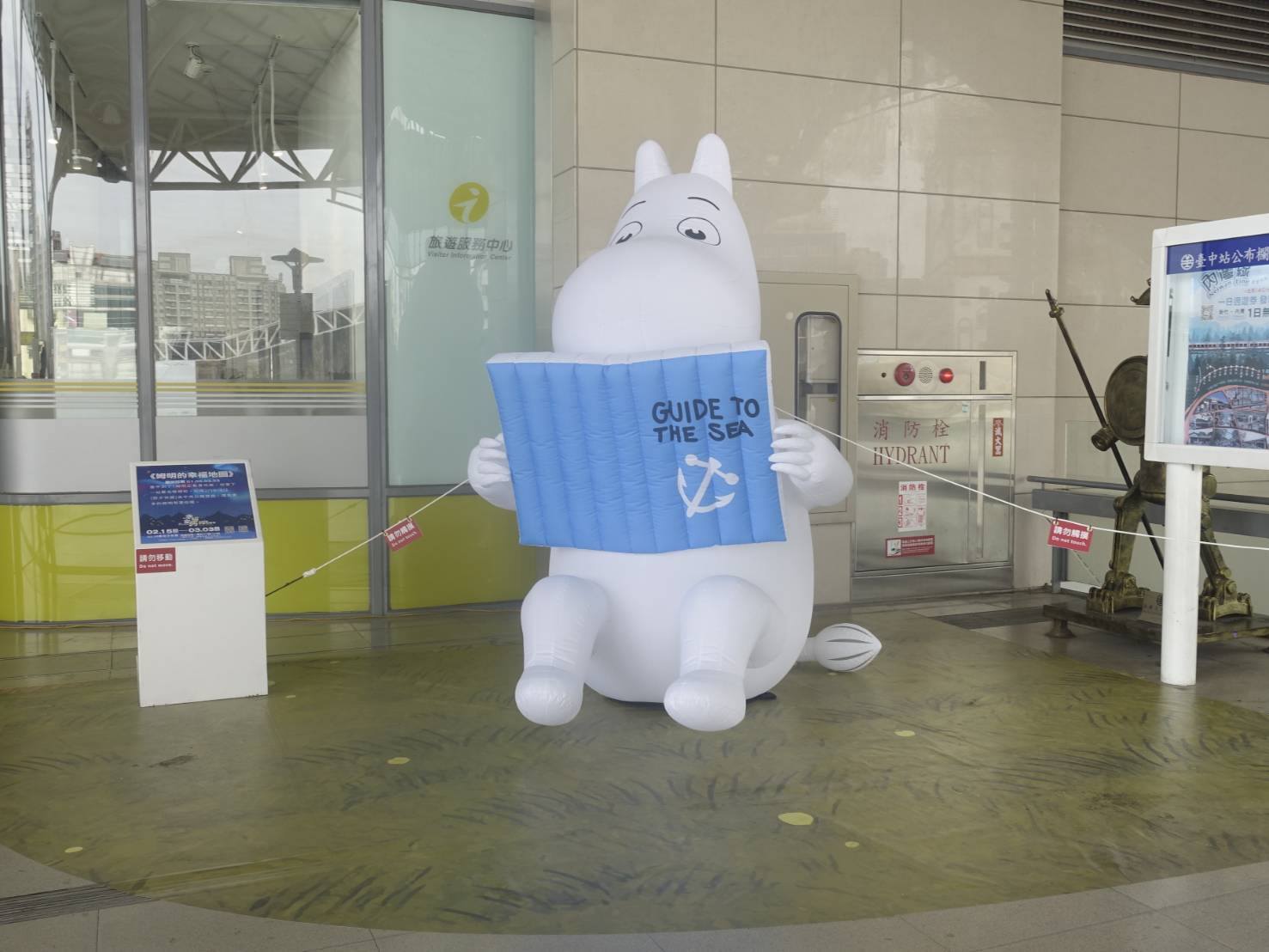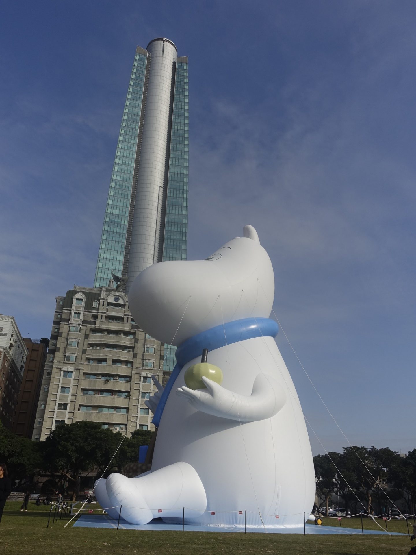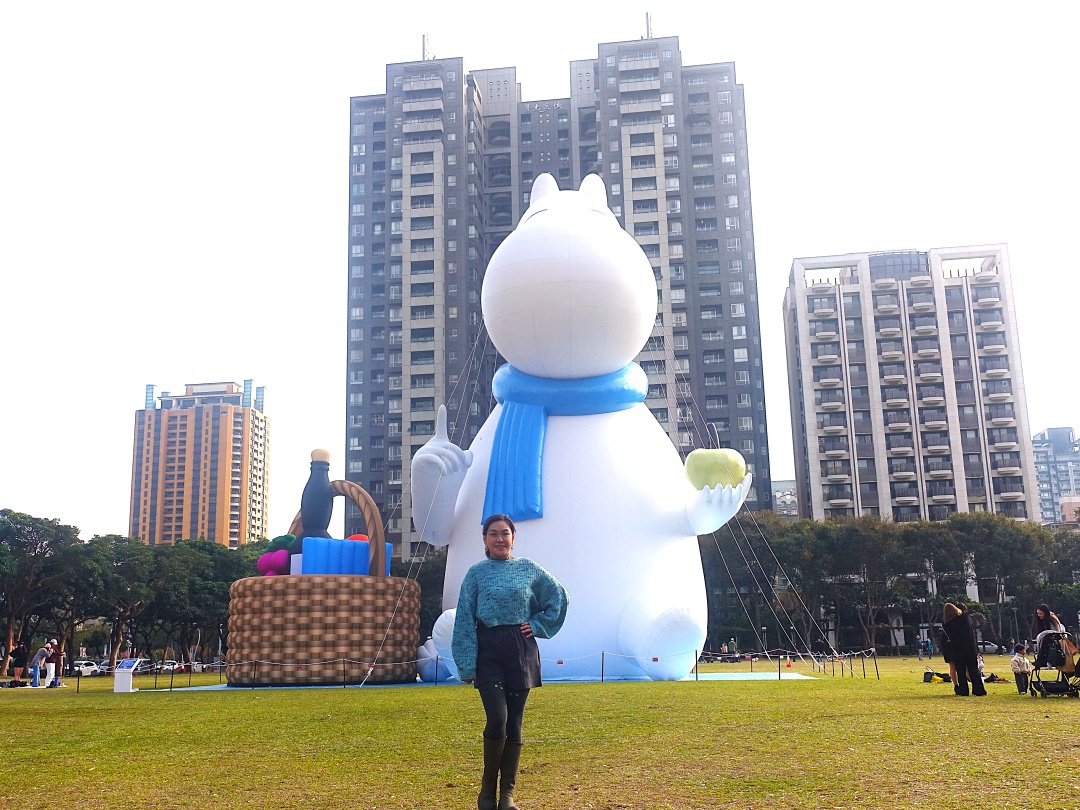 超可愛的巨型嚕嚕米姆明一族(The Moomins)中的嚕嚕米現身在台中市民廣場,身體圓呼呼地被人誤會是河馬,白白的身體又被小朋友們誤認是坐在草地上的巨型雪人(因為是冬天,他又圍著圍巾!),其實他的真實身分是精靈啦!