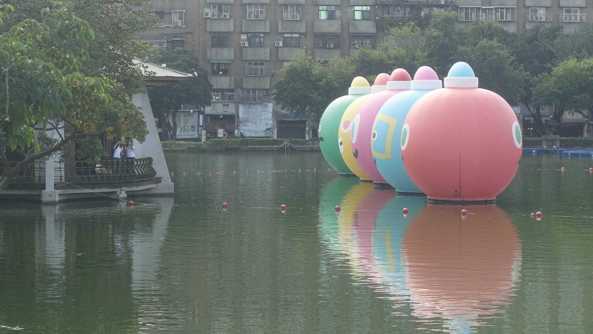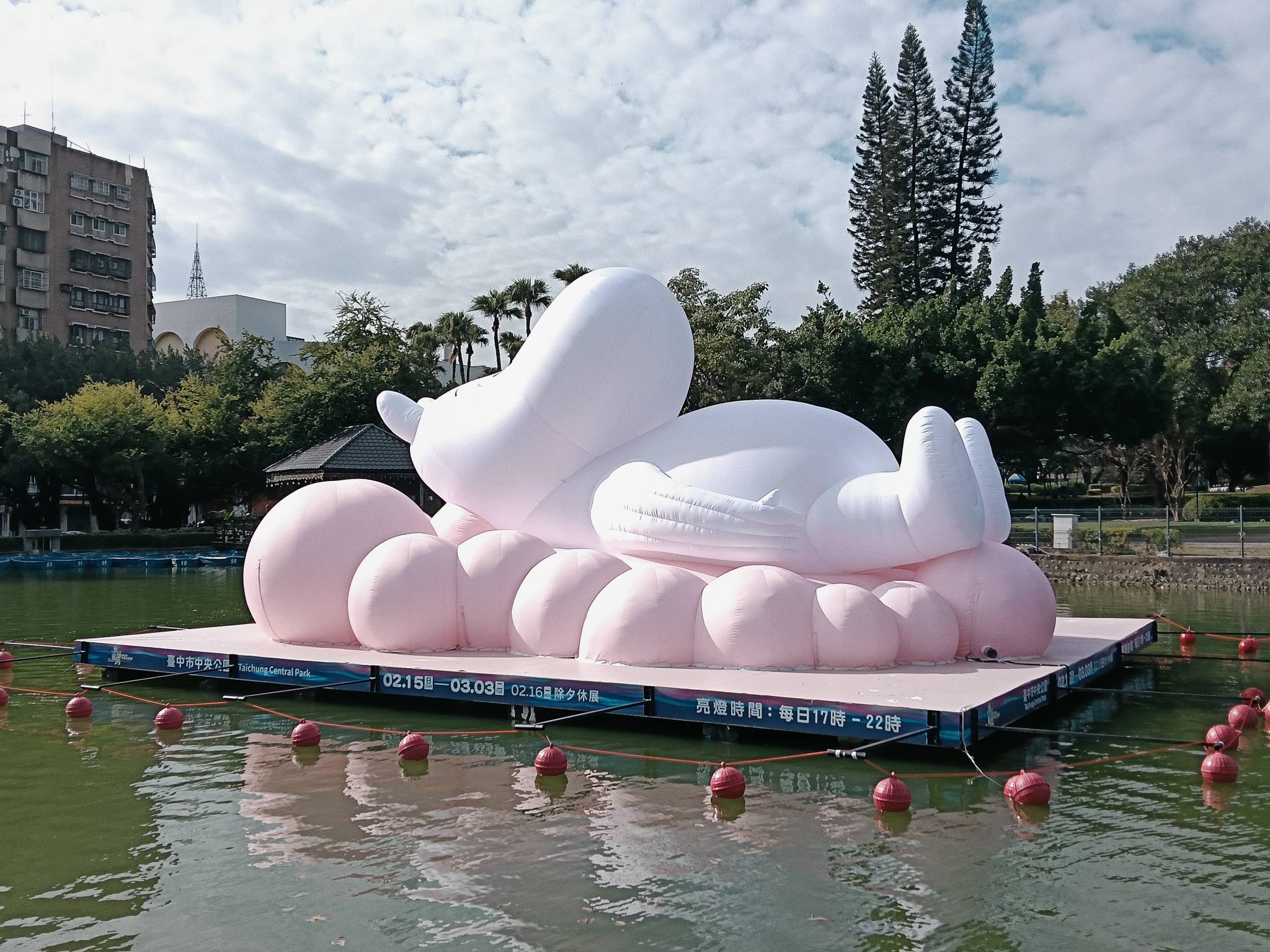 上次小編來到湖心亭是因為五月天的五顆球球,這次則是為了目睹嚕嚕米躺平在湖心亭中間可愛的模樣,圓圓的胖肚肚躺平在粉色的雲朵上,模樣可愛極了!