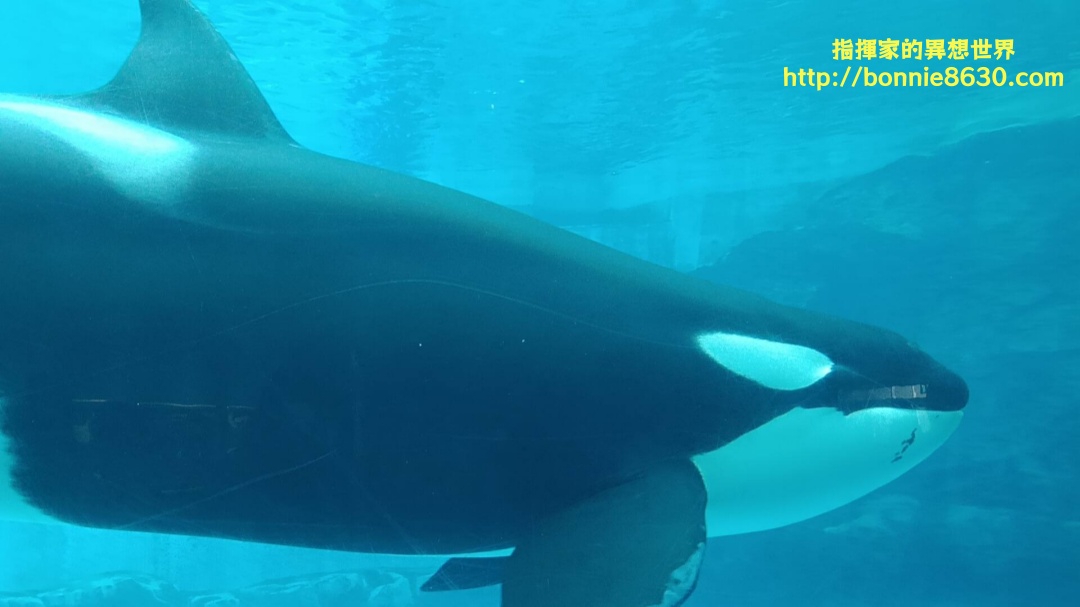 在這裡我們看到了一隻大虎鯨,牠的名子叫做「Rin」(リン),牠是雌性虎鯨。(原本還有一隻雄性虎鯨アース,Earth ,但因為去年生病過世了!R.I.P)一入館就給我們大大的震撼,虎鯨Rin在大型的水族箱裡優游,一點都不怕生,時不時就靠過來看看我們,跟我們秀出牠的游泳技巧,牠還會倒栽蔥很久喔~~~~😁😁🦈