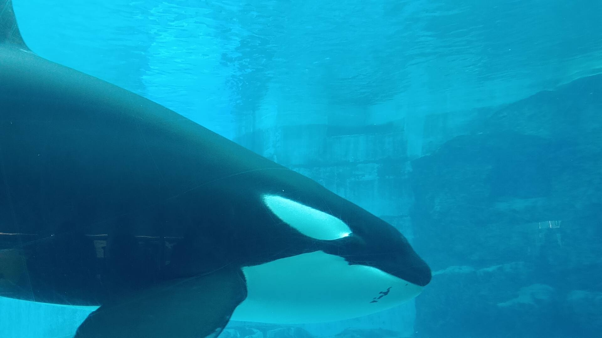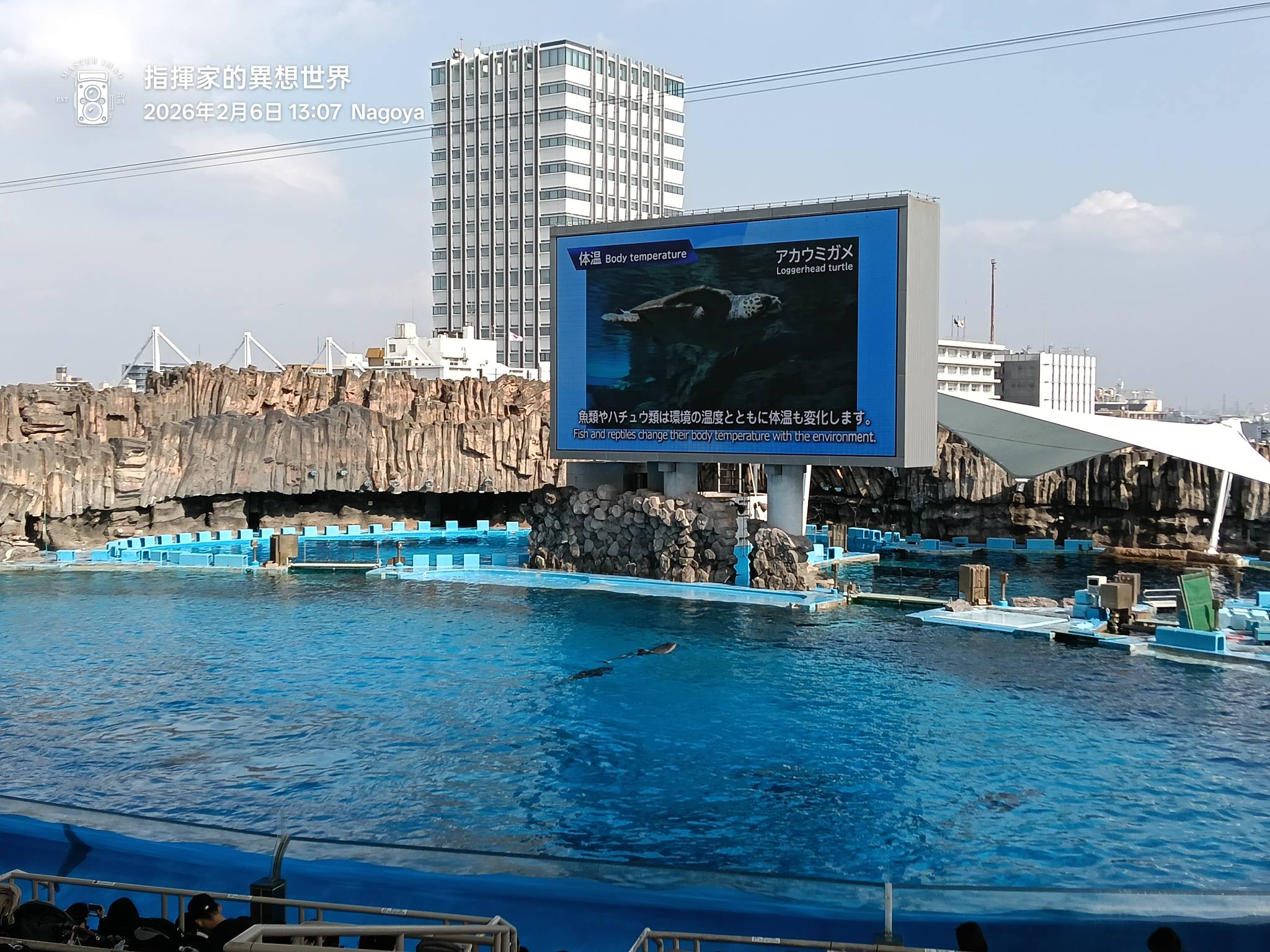 這裡可以看到館內所有在表演的鯨豚,有時整齊的排隊游泳,有時向上集體呼吸換氣,真的可愛極了!我們在這區待滿久的,有時候海豚還會主動來逗我們,表情實在逗趣好笑,在這區也擁有療癒的心情,看海豚們游泳觀察牠們的習性,還真美好呢!