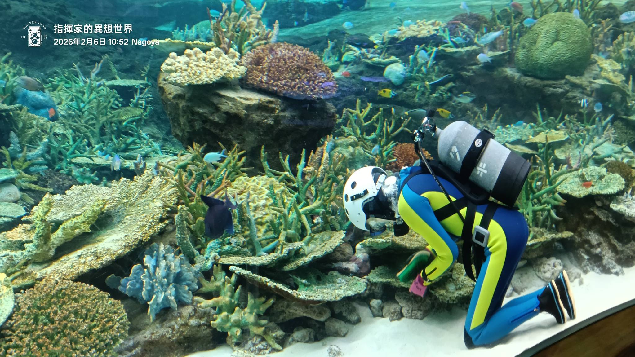 我們在這裡剛好遇見潛水員在清理珊瑚礁及大水缸,弟弟第一次看到水族缸裡有人揹著氧氣筒在工作,原來學會潛水還有很多工作可以做,為海洋盡一份心力!