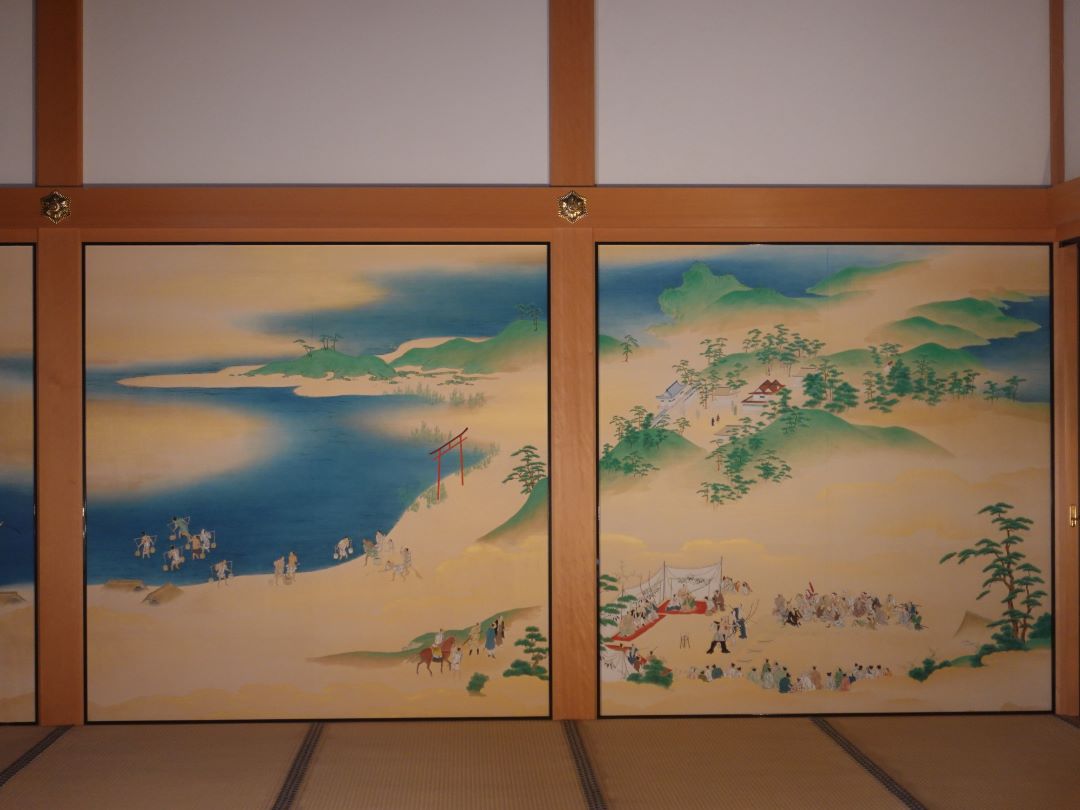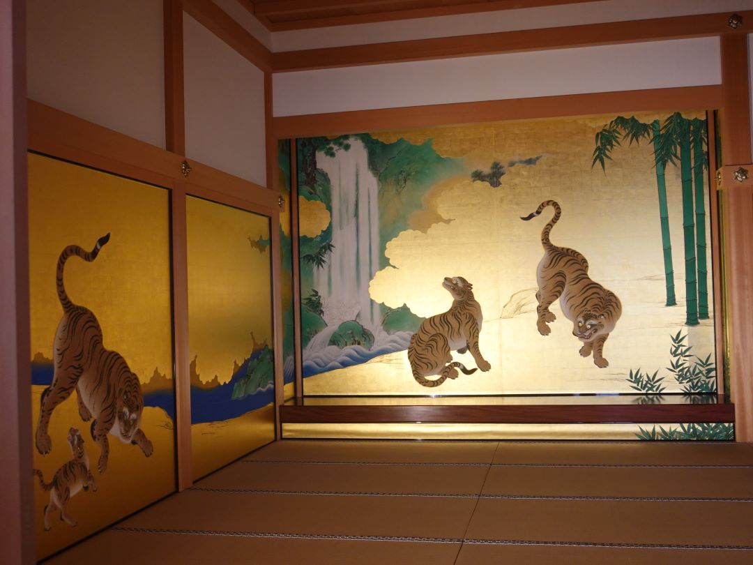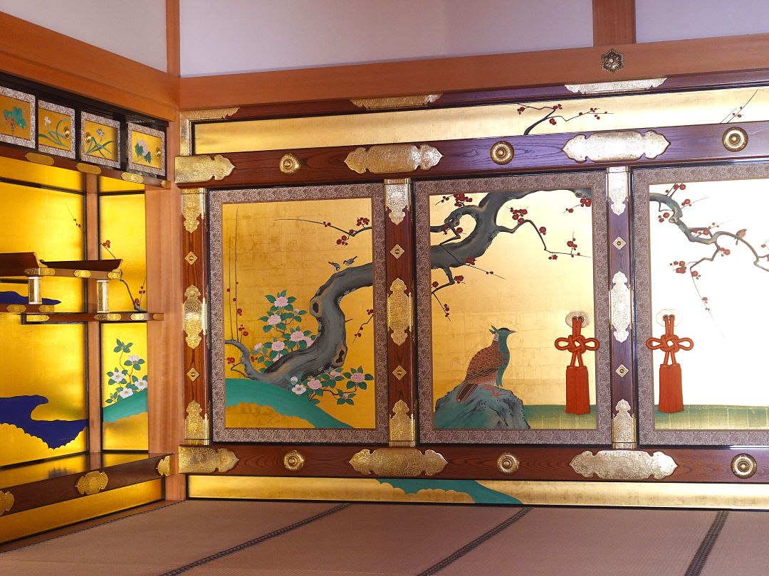 💗結構與奢華:採用檜木等木材建造,屏風門和天花板上繪有駱野派等藝術家的精美畫作。