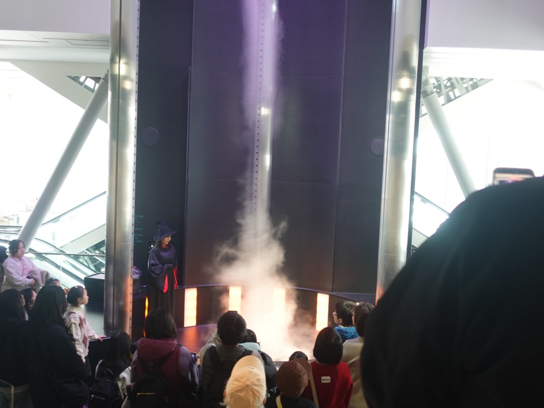 我們在名古屋市科學館的巨大球體中,聽兩位博士做氣體燃燒的實驗非常的有趣及震撼喔!