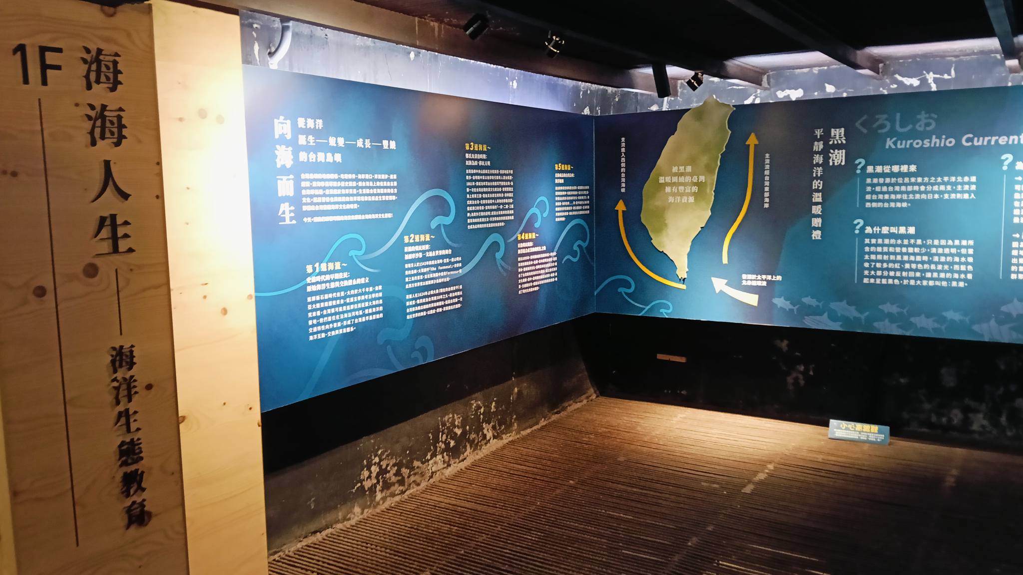 走進一樓展區我們看到海海人生–海洋生態教育,這是告訴我們台灣洋流的情況,也是四面環海的台灣擁有的自然資源。