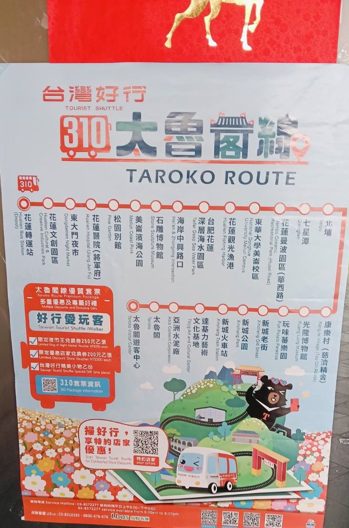 - 台灣好行310線(太魯閣線): 於花蓮轉運站搭乘,在「花蓮曼波園區(華西路)」站下車,班次較固定,適合前往四八高地戰備坑道。