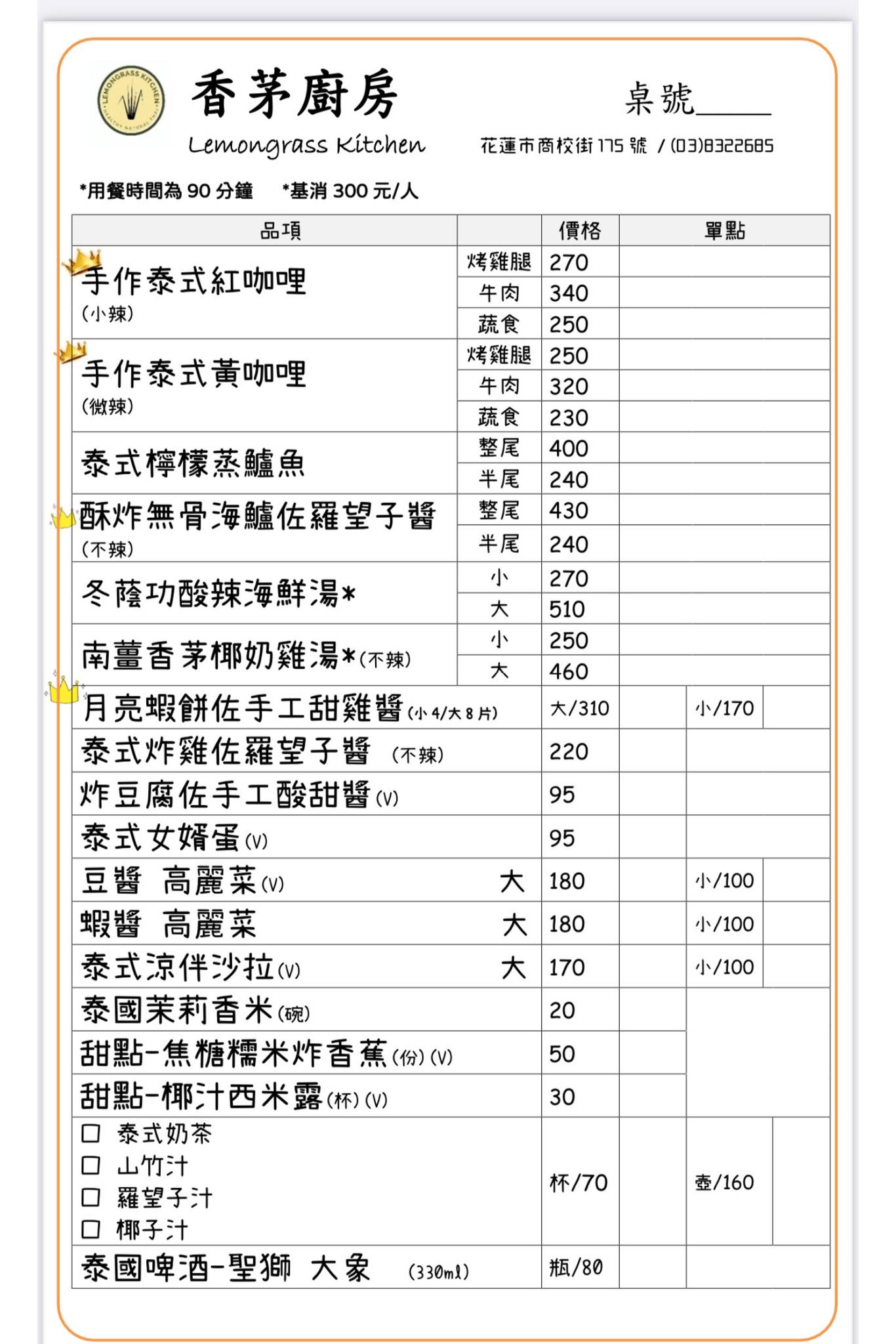 訂位專線:038322685 or 粉專私訊