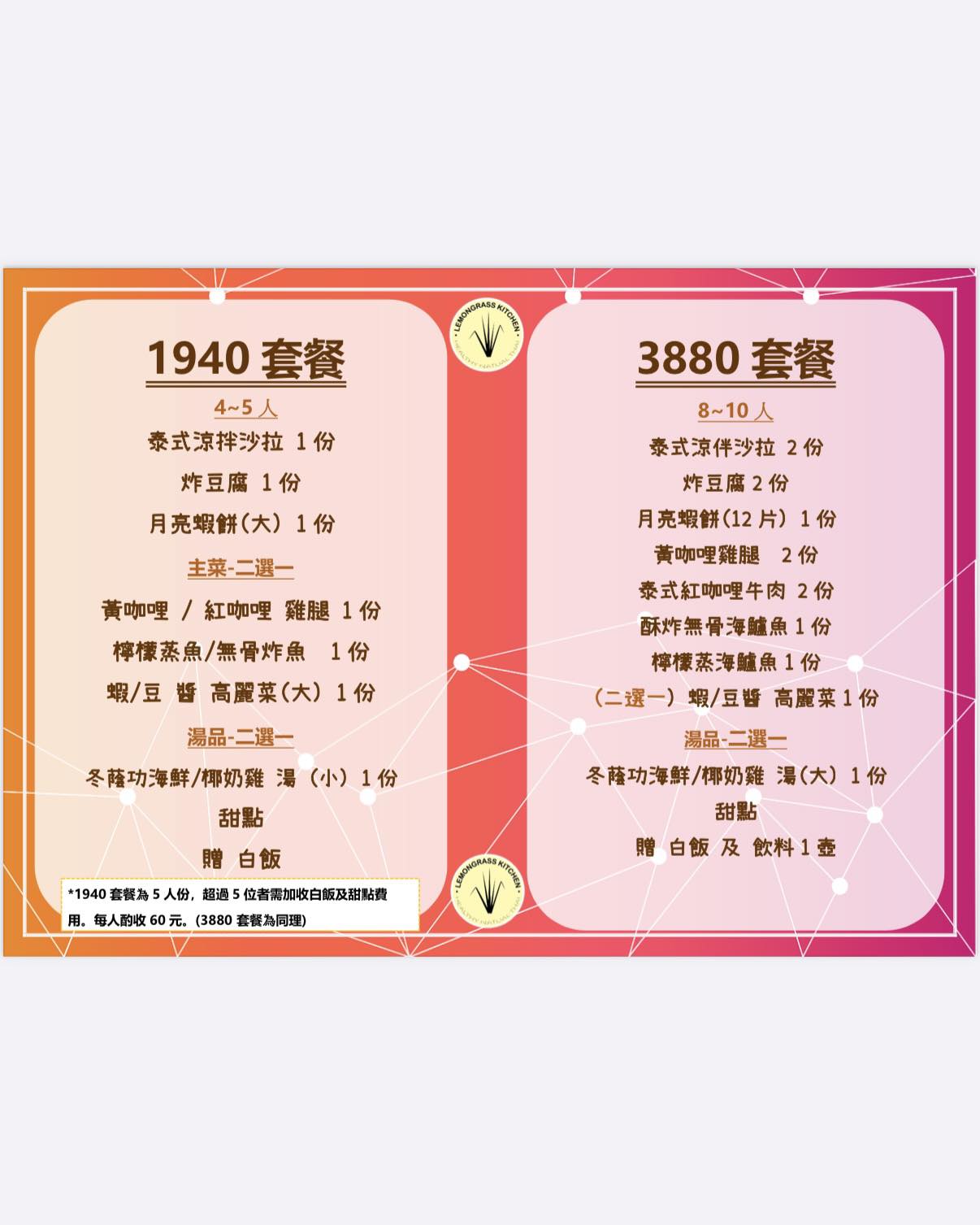 註:訂位8位以上(含8位)需預付訂金。