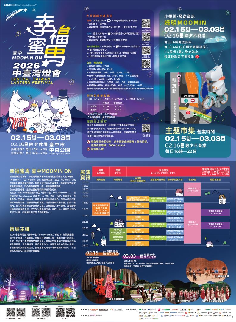 一年一度的台灣燈會又來到啦!今年追燈會可能要追到腳軟軟囉!各地燈會都好精采,小編也到台中中央公園一起走一走賞燈啦!每一年的台中燈會,小編都會跟著家人一起賞燈,這一次2026年中台灣燈會,在台中西屯區的中央公園,主題為「幸福蜜馬 臺中MOOMIN ON」2026中臺灣燈會於2/15(小年夜)至3/3(元宵節)於臺中市中央公園盛大登場(除夕休展),以全台最大單一場域的地方型燈會,打造全台唯一的沉浸式極光秀!