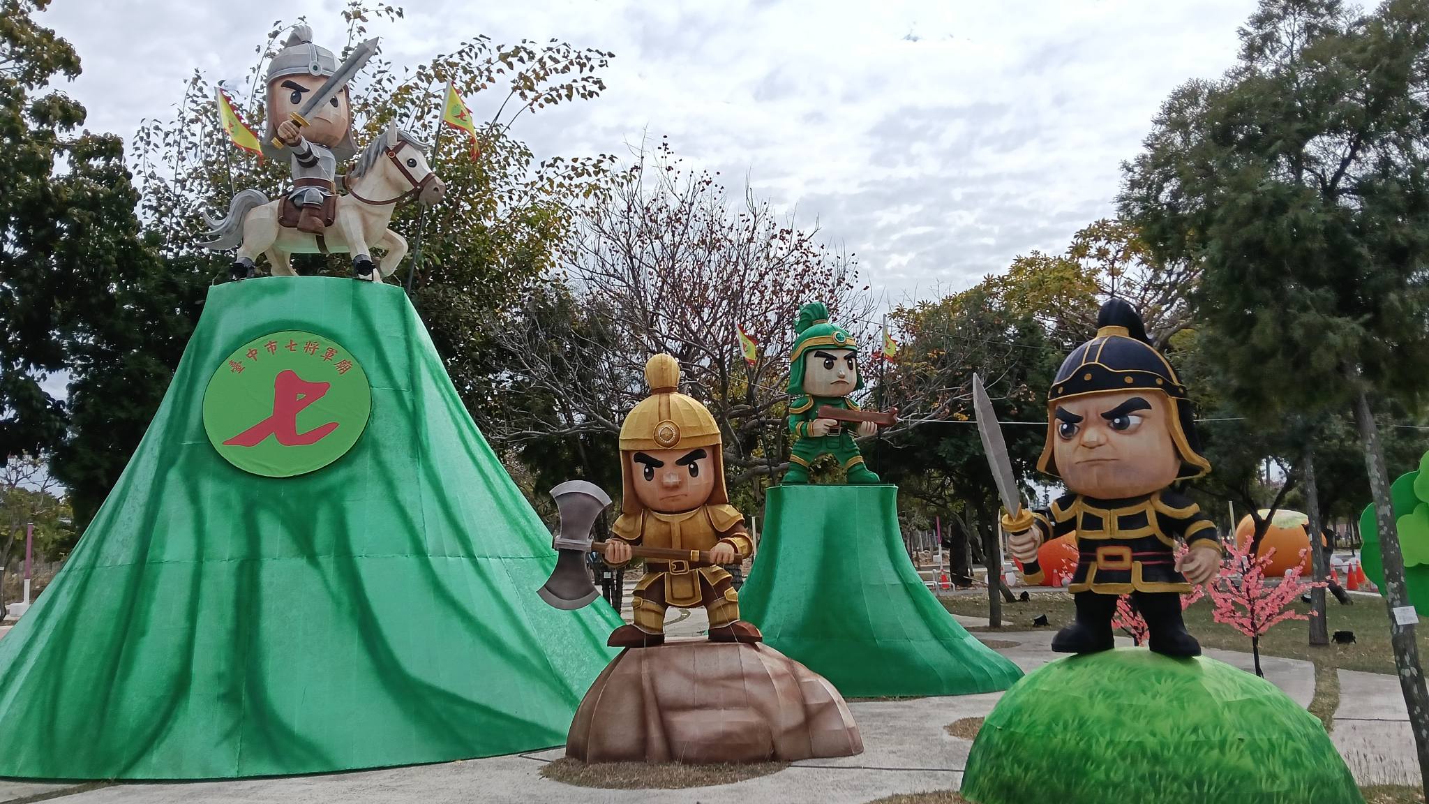 可愛的七將軍花燈,有的騎馬,有的拿斧頭,有的拿劍,認真萌萌的模樣,白天也很好拍喔!